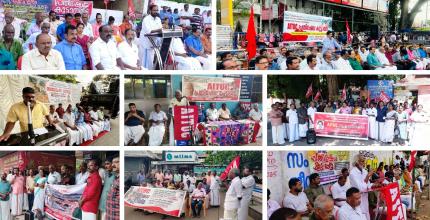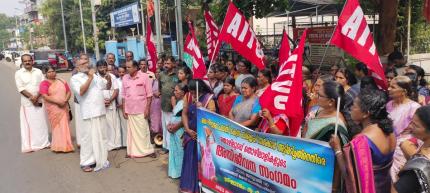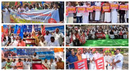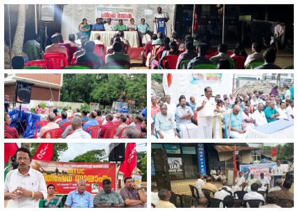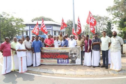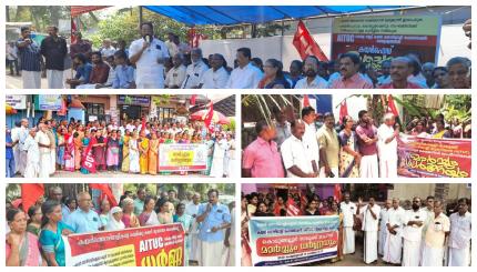 22.09.2024: SAVE WAYANAD: THE ALL INDIA TRADE UNION CONGRESS (AITUC) ORGANIZED A PROTEST DHARNA IN SEVERAL DISTRICT CENTERS, CALLING FOR THE DECLARATION OF THE WAYANAD DISASTER AS A NATIONAL DISASTER AND THE GRANTING OF SPECIAL CENTRAL FINANCIAL ASSISTANCE. TJ ANJALOSE, STATE PRESIDENT, KP RAJENADRAN, STATE GENERAL SECRETARY, G LALU, DISTICT SECRETARY, ADV.MOHANDAS, DISTRICT PRESIDENT, D.SAJI, DISTRICT SECRETARY, P.MUTHUPANDY, DISTRICT PRESIDENT, KC JAYAPALAN, STATE VICE-PRESIDENT, P,SUBRAMANYAN, STATE VICE-PRESIDENT, TV BALAN, MEMBER, CPI STATE EXECUTIVE, CP SANTHOSH KUMA, DISTRICT SECRETARY, CPI INAUGURATED EVENTS HELD AT THIRUVANANTHAPURAM, THRISSUR, KOLLAM, ALAPPUZHA, PATHANAMTHITTA, IDUKKI, PALAKKAD, MALAPPURAM AND KANNUR DISTRICTS RESPECTIVELY