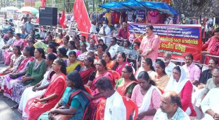 THE SCHOOL MID-DAY MEAL WORKERS UNION STAGED A FIVE DAY-LONG STRIKE IN FRONT OF THE SECRETARIAT FROM APRIL 22 TO 26, DEMANDING TIMELY PAYMENT OF WAGES, DISTRIBUTION OF ARREARS OF WAGES, IMPLEMENTATION OF MINIMUM WAGES WITH RETROSPECTIVE EFFECT, AND FOLLOWING THE TAMIL NADU GOVERNMENT'S MODEL OF RECOGNIZING SCHOOL MIDDAY MEAL WORKERS AS GOVERNMENT EMPLOYEES ETC. ON APRIL 22, THE DHARNA WAS INAUGURATED BY K.P.RAJENDRAN, STATE GENERAL SECRETARY OF AITUC. ON THE SECOND DAY OF THE STRIKE, AITUC STATE SECRETARY C.P. MURALI INAUGURATED THE STRIKE. R. PRASAD, AITUC NATIONAL SECRETARY AND T.J. ANJALOSE, STATE PRESIDENT OF AITUC INAUGURATED THE EVENTS ON 3RD AND 4TH DAYS RESPECTIVELY. THE EVENT ON APRIL 26TH, THE CONCLUDING DAY, WAS INAUGURATED BY A. SHOBHA, STATE SECRETARY OF AITUC.