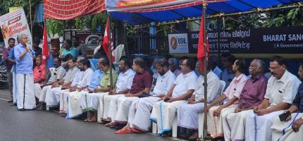A two-day dharnawas held in front of the Secretariat on May 15 and 16 under the leadership of AITUC, demanding urgent allocation of funds to protect Supplyco, which controls the price hikes in the public market, and to protect its workers and employees. State General Secretary KP Rajendran inaugurated the dharna. State President TJ Anjalose presided. Secretary Adv. R. Sajilal welcomethe paprticipants and speakers. CP Murali, P Raju, CK Sasidharan, KS Indusekharan Nair, KV Krishnan, KC Jayapalan, Thavam Bala Krishnan, Govindan Pallikappil, K Mallika, PK Murthy, P Subramanian, PV Sathyanesh, Kamala Sadanandan, Elizabeth Azisi , Chengara Surendran, Kavita Rajan, A Shobha, Solomon Vettukad, V Mohan Das, K N Gopi, D Saji, DP Madhu, Sunil Mohan and Suresh Mukhtala spoke on the occasion.