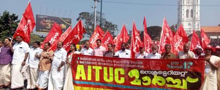 Over one lakh workers marched to the government secretariat demanding the withdrawal of labor codes, an end to the discriminatory practices of the Modi government against state governments, and the protection of jobs, wages, and social security benefits. The march was organized as a continuation and successful culmination of two campaign marches held by the AITUC across the state from the 10th to the 17th of December 2024.